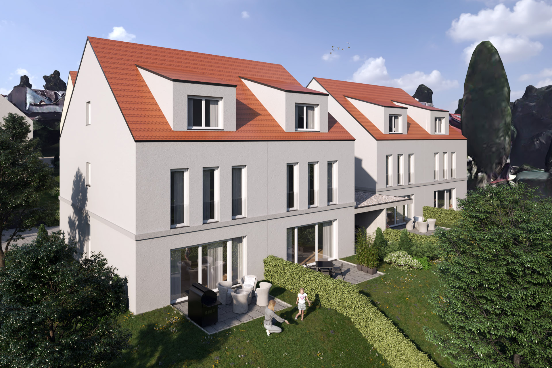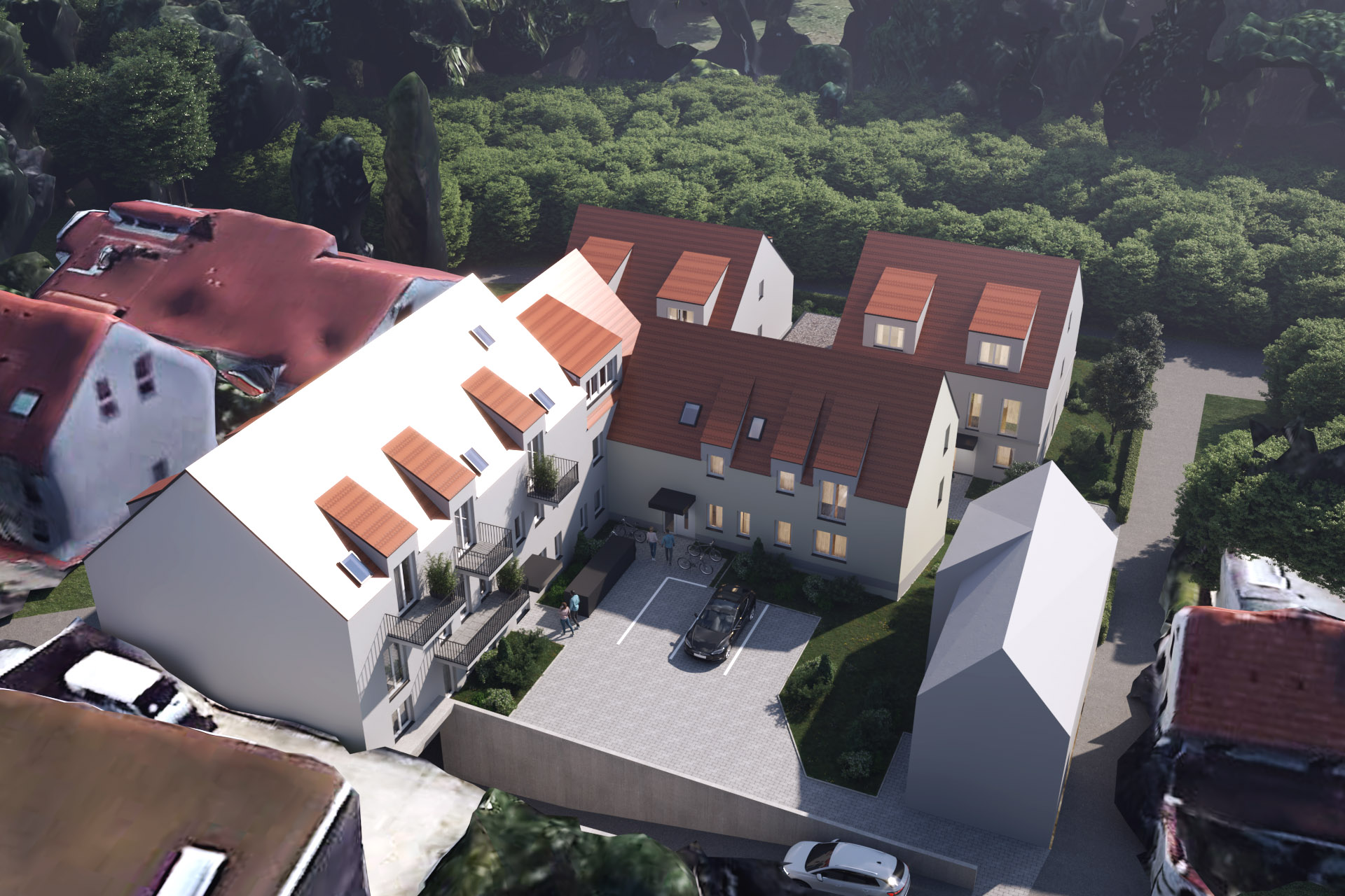 Neubau Mehrfamilienhaus mit 8 WE und 2 Doppelhäusern auf Mittelgarage